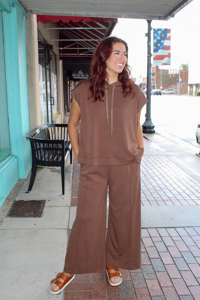 Wrap yourself in cozy luxury with our Soft Intentions Set — where comfort meets elevated style. Crafted from an ultra-soft double knit fabric, this matching set brings a refined touch to your everyday lounge look. The sleeveless hoodie features a relaxed fit with a feminine twist — a delicate floral fabric lining for the perfect hint of charm. The matching drawstring pants complete the look with a flattering, laid-back silhouette that moves with you.