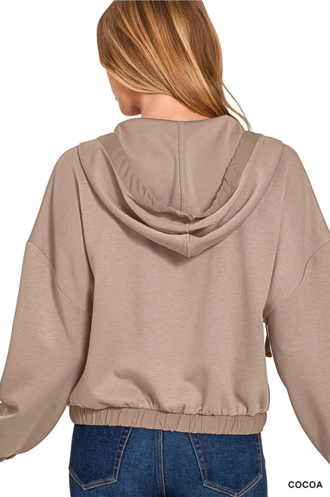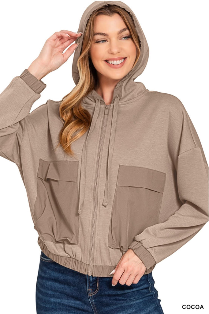 The Round The Fire zip-up is your go-to layer for cozy nights and casual days. Its warm cocoa color and soft fabric make it the perfect neutral piece to mix and match all season long. Here’s how to style it: